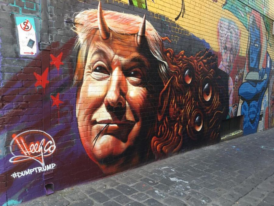 Foto uitgelicht: Pictured: Donald Trump in a street art representation as a devil by Aaron Scheibner is licensed under CC BY 2.0
