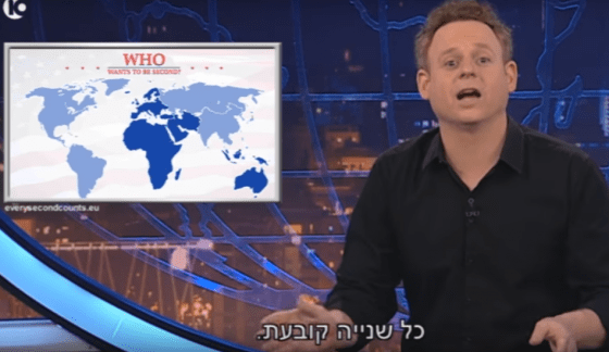 “We totally understand that it’s going to be America first, but can we just say ‘Israel second’?” Satire show’s clip, … Meer