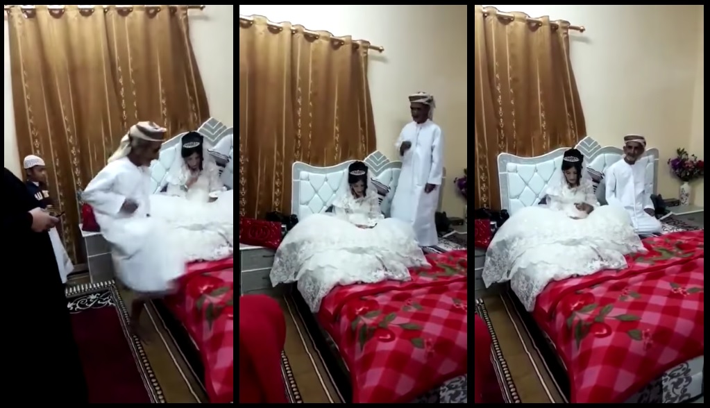 80-year-old Arab Muslim groom and his 12-year-old bride about to consummate their marriage in front of a crowd?