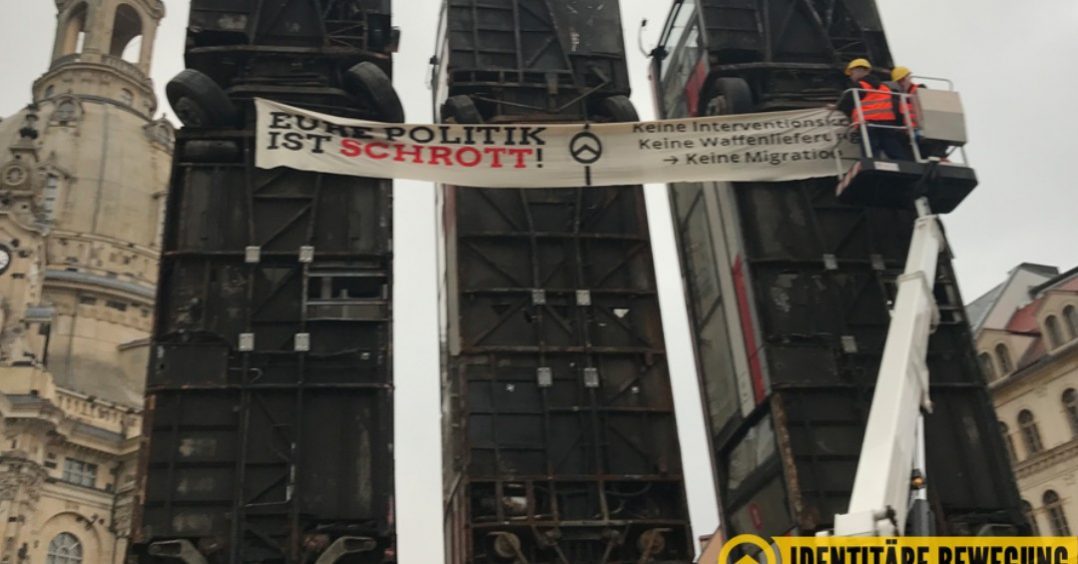 „Politik und Medien verbleiben jedoch in ihrer selbstkonstruierten Illusion und ihrer moralischen Anklage gegenüber der Dresdner Bevölkerung“, schreibt die IB.“ Und: „Die ‚Refugees Welcome‘-Politik und Ideologie der Willkommenskultur waren die Chiffre für den islamischen Terror und die Massenvergewaltigungen in Europa. Das Dresdner Bus-Monument ist die perfekte Repräsentation dieser multikulturellen Lüge. Die Identitäre Bewegung…