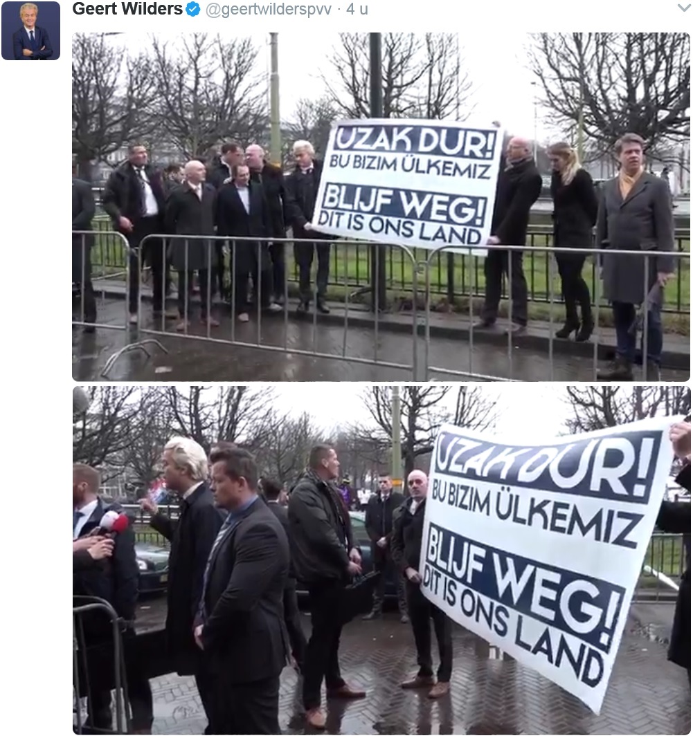 Wilders complained that the Dutch government had done too little to prevent the event, adding that he wants Turkish government ministers declared “persona non grata” until the April 16 referendum.