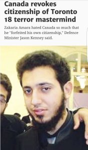 Toronto Sun (h/t Sue K) Zakaria Amara, born in Jordan and raised in Saudi Arabia before coming to Canada in 1997, is a convicted terrorist, serving a life sentence for his role in a plot to murder scores of Canadians. And now, thanks to a new liberal government bill passed through the Senate this week, Amara will soon be given the privilege of keeping his acquired Canadian citizenship.