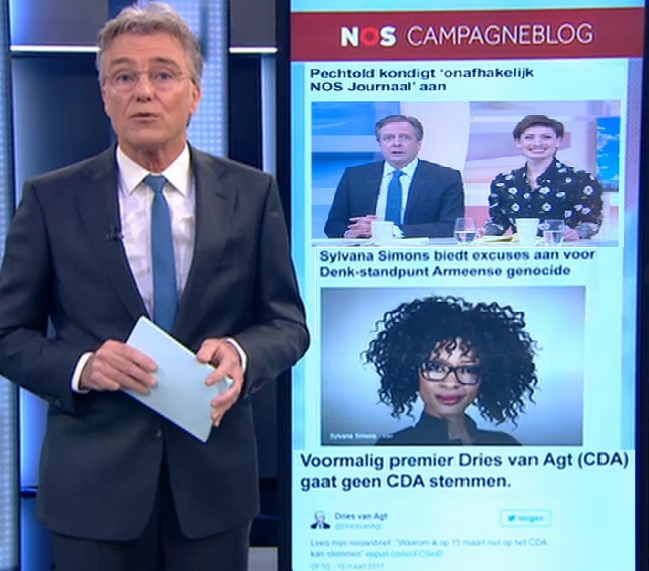 Alle overige items waren volledig opvulmiddel en zelfs het NPOlicor propagandistische campagneblog viel dit keer geen eer aan te behalen; Sylvana Simons heeft haar excuses aangeboden over de ontkenning van de Armeense genocide, althans, ze had er geen mening over ten tijde van haar DENK periode. Natuurlijk liet ze zich toen door die jihadisten de mond snoeren. Zo iemand is dus ook al niet te vertrouwen op voorhand. Ach, dat Artikel1 sterft toch een stille dood. Dan is daar kereltje Peggold die wel heel flauwtjes Geert Wilders imiteert door het “onafhankelijke” journaal aan te kondigen. Leuk hoor, echte D666 humor. Spellen (onafhakelijk) kunnen ze trouwens ook niet bij de N(O)SB. Als laatste item is daar de nazi van Agt die géén CDA gaat stemmen omdat die partij te pro Israël is. Ze hebben eerder tegen een motie gestemd die daarmee verband hield.