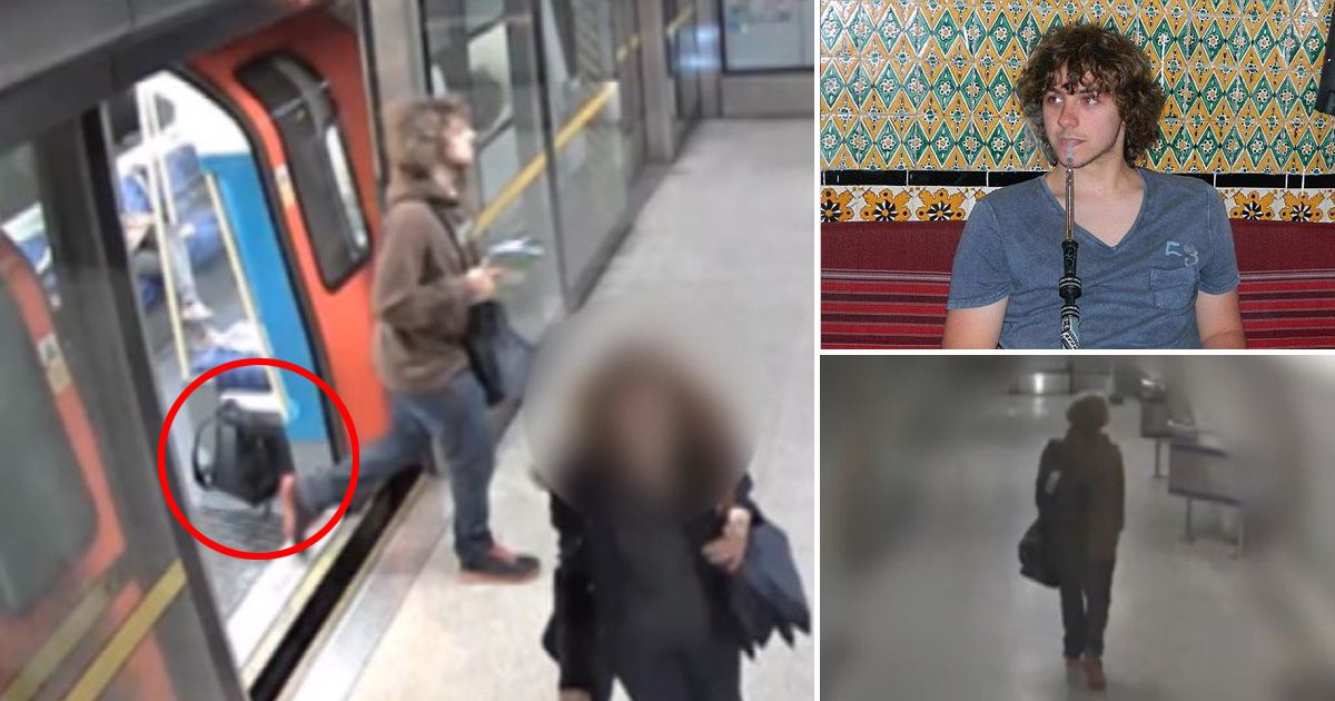 Chilling footage shows the moment that an ‘ISIS inspired’ student from Devon allegedly left a ball bearing bomb on a Tube train in London.