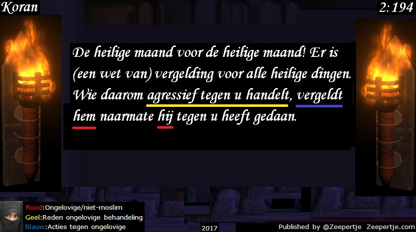 Vergelding vergelding, dat is wat de Koran voorschrijft, hoe anders dan het denken in het christendom van “turn the other cheek” en dat wil er jammerlijk bij christenen niet in.