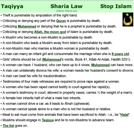 There is no version of Sharia law that does not require women to wear veils and doesn’t prescribe whipping, stoning and mutilation as punishment for transgressions. There are Muslim countries that don’t implement Sharia punishments or enforce Sharia restrictions upon women. But those countries are not operating according to some “moderate” form of Sharia. There is no such form of Sharia, except in the fantasies of Western non-Muslims.