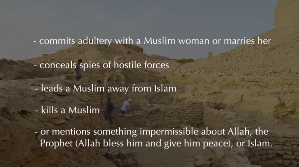 Acts causing the ending of dhimmie status
