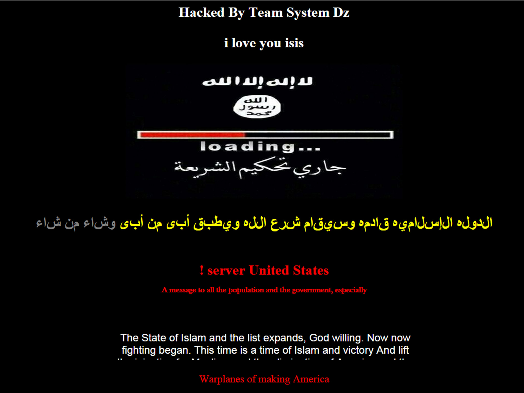 The vandalization played out under a banner, reading: “Hacked By Team System DZ,” while the bottoms of the now-blackened pages declared “I love Islamic State.”…