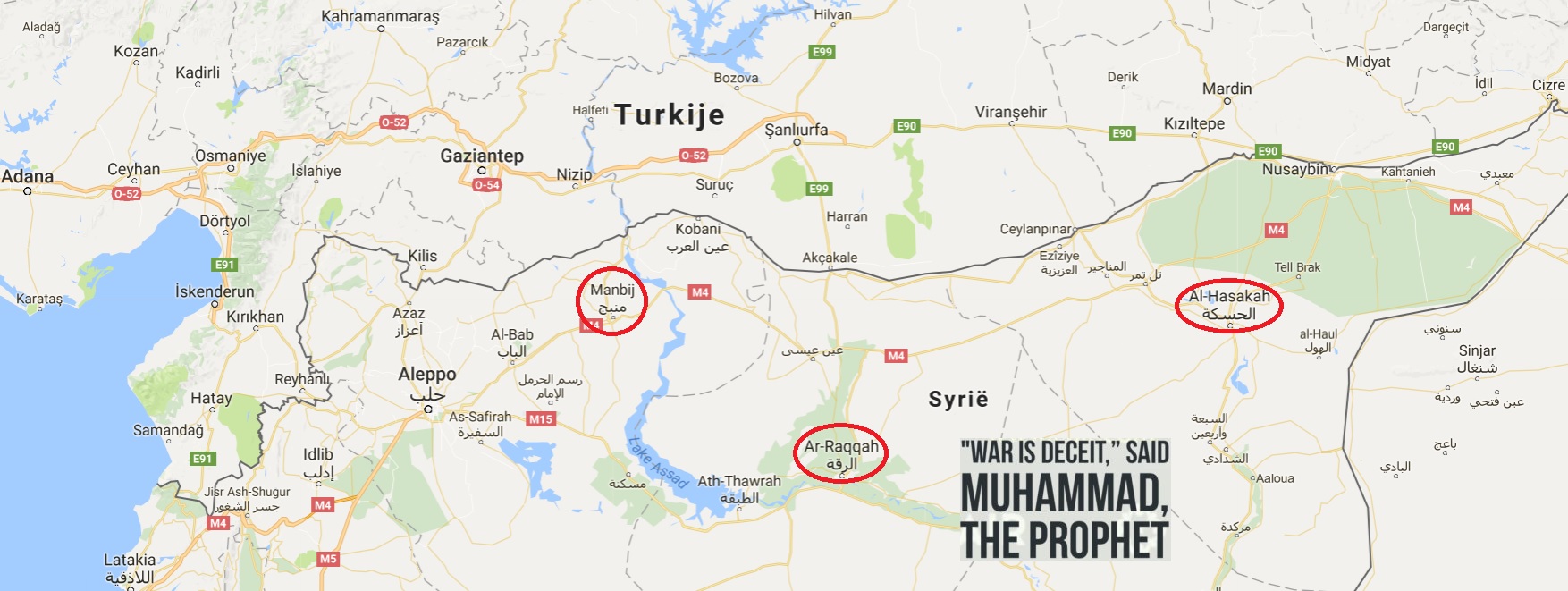 The article lists three points in Hasakeh, two points in Manbij, and three spots north of Raqqa.