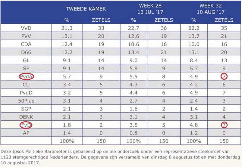 PvdA en Forum voor Democratie zijn in de midzomerse peiling van Ipsos Politieke Barometer even groot.