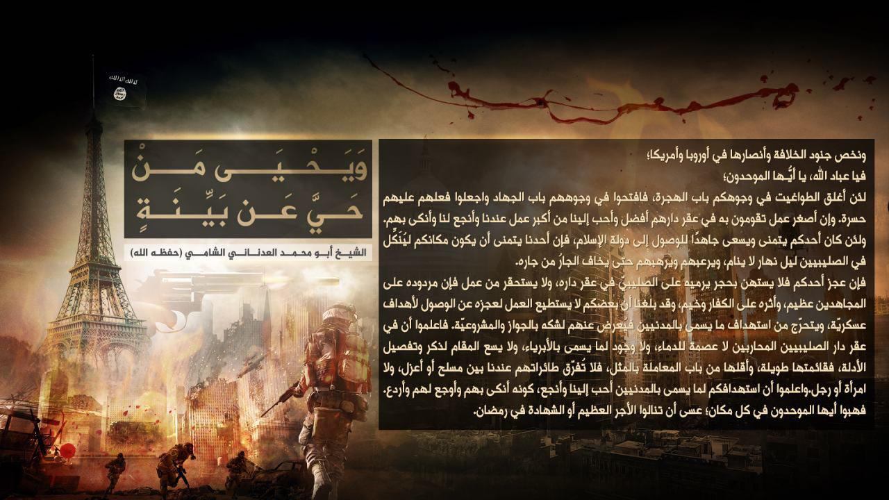 In het magazine Rumiyah heeft de terreurgroep meermalen aandacht besteed aan de vraag waarom en hoe je westerse burgers moet doden. “Burgers doden is halal”. Westerse aanhangers moeten zich niet beperken tot aanvallen op politie of leger, maar huis ook op jacht naar gewone mensen, zegt Rumiyah. “Bloedbaden onder niet-Moslims is een vorm van gebed.”