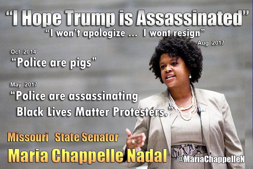 Maria Chapelle-Nadal, a Missouri lawmaker, posted on Facebook: “No. I will. I hope Trump is assassinated!”