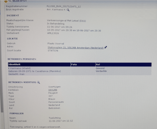 De identiteit van de man die in juni inreed op passanten bij het Centraal Station in Amsterdam is bekend geworden. Uit bestanden van de politie is gelekt naar de website GeenStijl. De politie is een onderzoek begonnen naar het lek.