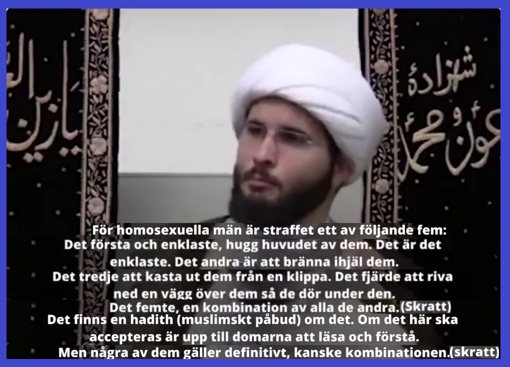 Dan is er ook nog: ze van een muur gooien, ze levend verbranden, en een combinatie van alle mogelijkheden. Aldus de imam lachend.