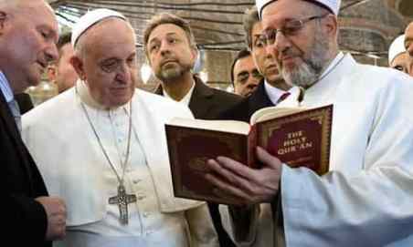 In other words, he thanked the Pope for dissembling about the motivating ideology of jihad terror, which his group has been accused of financing, and for defaming other religions in an effort to whitewash Islam.