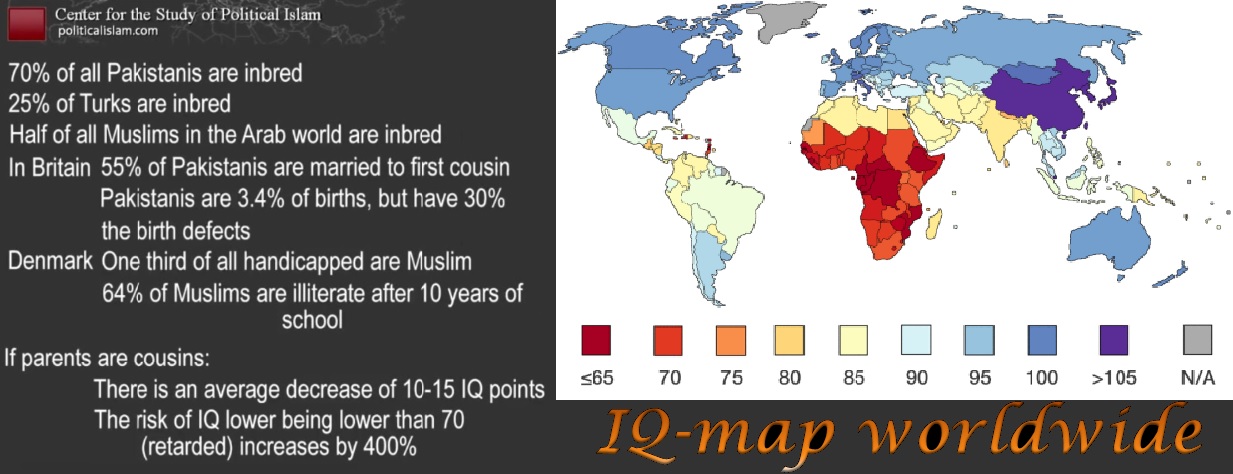 En we blijven ze maar binnen harken uit Afrika en het Midden-Oosten, check deze grotere kaart aangaande de worldwide “average IQ”;
