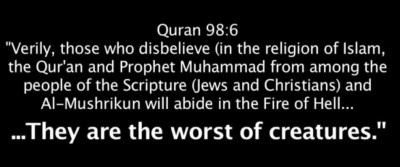 Rabbi, you want an example of mischaracterizing, demonizing, and stereotyping people and their beliefs? Check this out: the Qur’an depicts the Jews as inveterately evil and bent on destroying the well-being of the Muslims. They are the strongest of all people in enmity toward the Muslims (5:82); they fabricate things and falsely ascribe them to Allah (2:79; 3:75, 3:181); they claim that Allah’s power is limited (5:64); they love to listen to lies (5:41); they disobey Allah and never observe his commands (5:13). They are disputing and