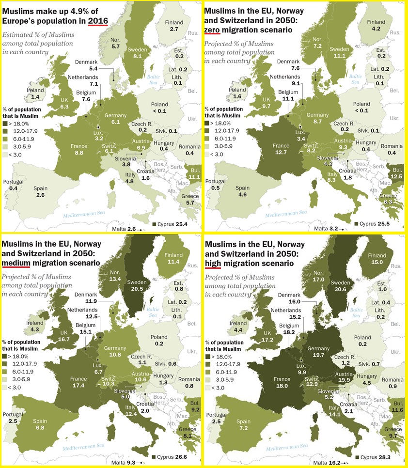 Even if all migration into Europe were to immediately and permanently stop – a “zero migration” scenario – the Muslim population of Europe still…