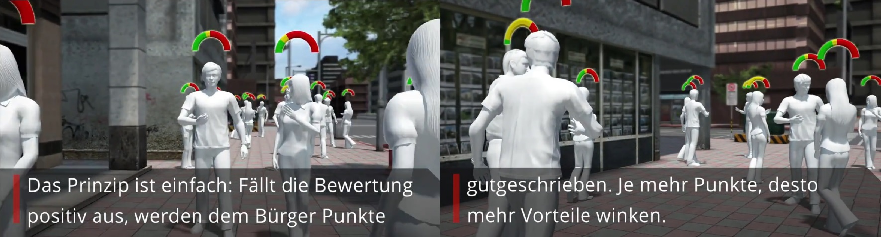 Das können zum Beispiel günstigere Kredite oder eine bessere Krankenversicherung sein. Wer dagegen durch das Spielen von Videospielen oder durch regierungskritisches Verhalten negativ auffällt, verliert an Punkten und muss eventuell sogar um seinen Job fürchten.