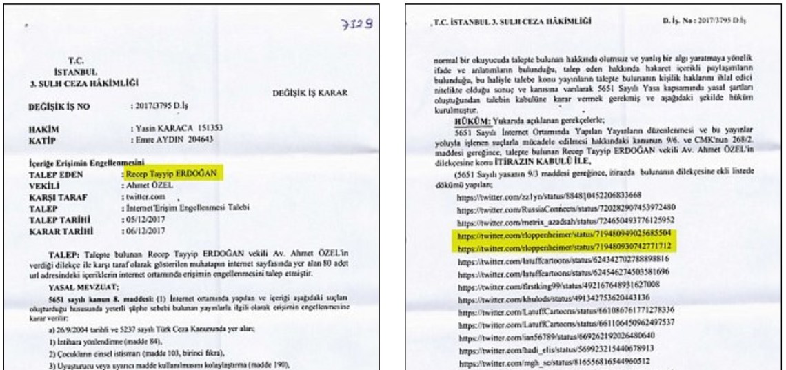 ‘In the accompanying text Twitter explains that it is a court order from a Turkish judge in Istanbul which they want to inform me about.’