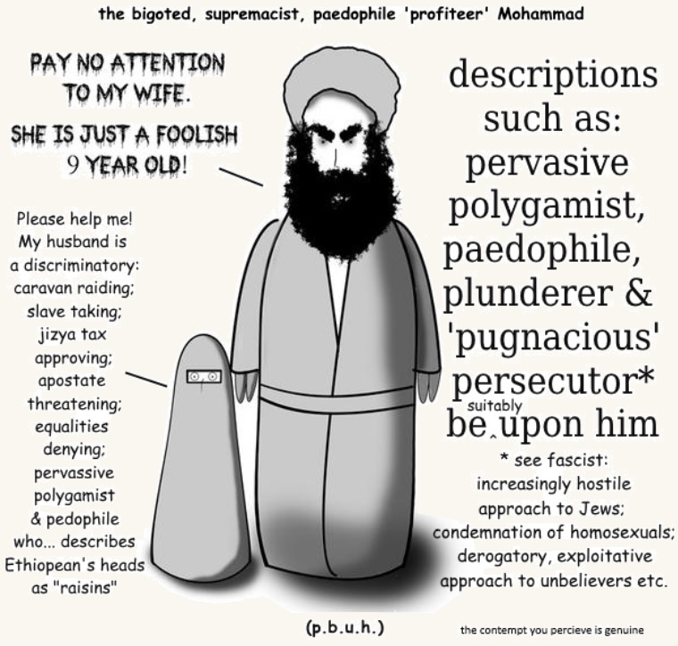 Fight islam for it's the evil of our time, evil trying to dominate and kill democracy, kill all freedom of speech and freedom of religion... Islam means annihilation of all that is non-islamic, AND the proces of islamization is, together with the promotion of the leftist "progressive" behaviour (like transgender /multiculti /mass-migration /interrace-marriage promotion and therefore destruction of Western (family) values) the blower on the machine called Zionism. The total submission/destruction of the Goyim/Kafir so Human Kind!