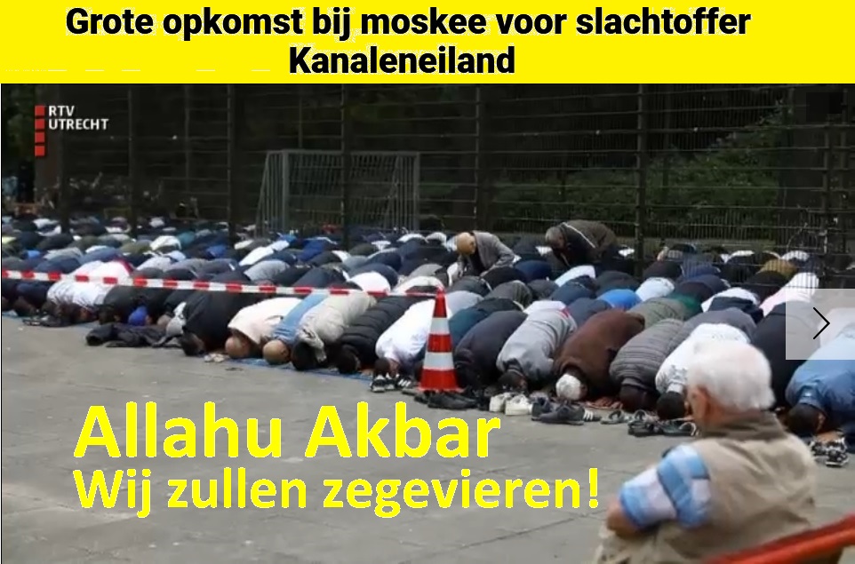 | Honderden islamitische bukbidders waren bijeengekomen met als gevolg dat de kazerne te klein was om de satanisten te herbergen. Er werd publiek terrein geconfisqueerd om het Westen-vijandig ritueel ten uitvoer te brengen. De geknipte beelden uit een videoverslag van RTV-Utrecht geven een goed beeld zoals de toekomst er meer en meer uit zal gaan zien. Spandoeken over de “Ummah”, krijsende bukbidders, schallende minaretspeakers… Het gaat dezelfde kant op als in Frankrijk en het Verenigd Koninkrijk waar het tot wekelijks terugkerende beelden behoort.