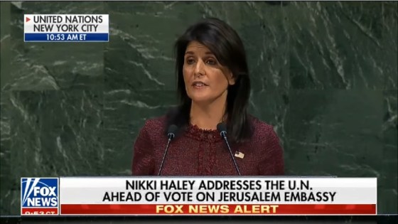 Ambassador Nikki Haley tells UN General Assembly: “The United States will remember this day in which it was singled out … Meer